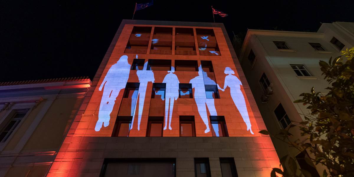On the evening of November 25th, the Embassy premises, the building of the Bodossaki Foundation in Athens, the Athens Solidarity Centre and the open accommodation facility “A step forward” operated by the Doctors of the World, light up in orange, a show of solidarity with the International Day for the Elimination of Violence against Women, launched in 1999 by UN Women and held annually.