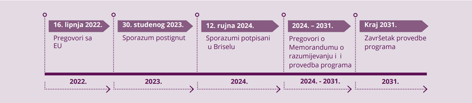 The agreements concerning funding through the EEA and Norway Grants until 2031 were signed in Zagreb on 23 September 2025. The funds are distributed across five sectors, contributing to three overarching objectives: the European green transition; democracy, rule of law and human rights; and social inclusion and resilience. The overall aim of the Grants is to reduce economic and social disparities within the European Economic Area and to strengthen bilateral relations with the recipient states.