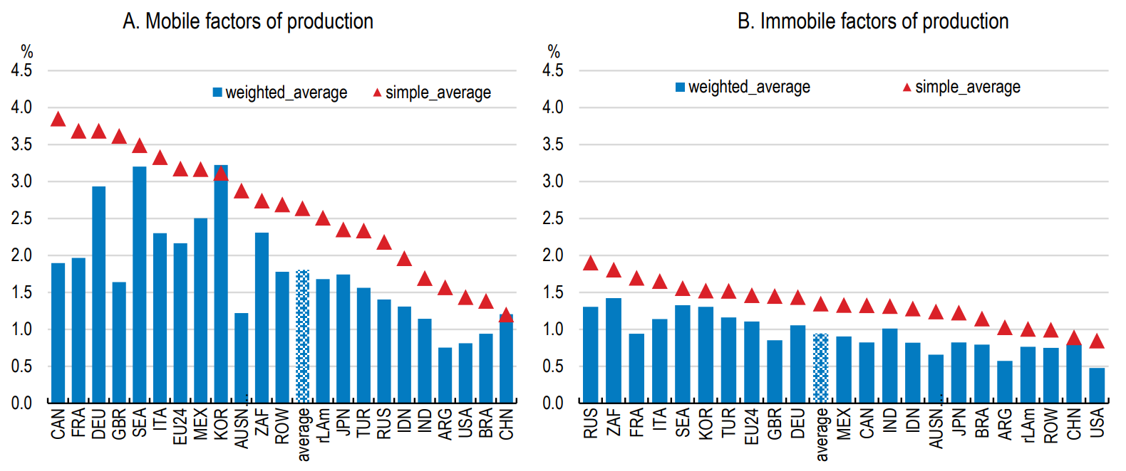 OECD har gjort analyser basert på modellen METRO for scenarier hvor land i ulik grad reduserer sin tilknytning til globale verdikjeder gjennom høyere tollsatser, subsidier og restriksjoner på handel. OECD har vurdert et verste-tilfelle scenario der alle land bestemte seg for å redusere sin tilknytning til globale verdikjeder. I et slikt scenario kan verdenshandelen falle med over 18% prosent, og globalt BNP reduseres med mer enn 5% reelt. Enkeltland kan tape mellom 1-12% av BNP, avhengig av hvor integrert de er i internasjonal handel i utgangspunktet.